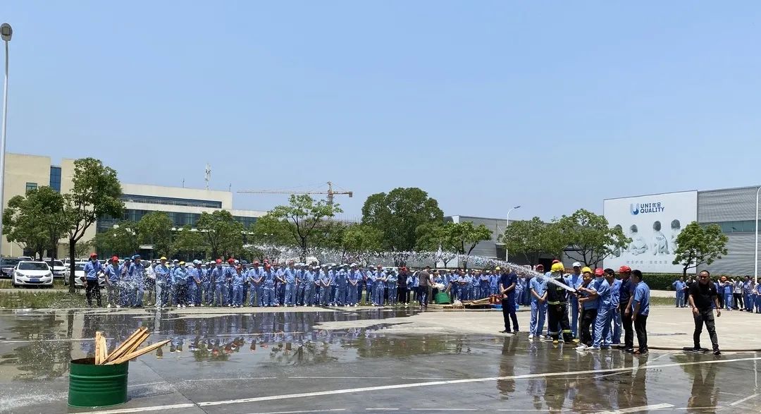 Giugno di quest'anno è il 20° "Mese della produzione sicura" nel Paese, con il tema "Implementare le responsabilità in materia di sicurezza e promuovere lo sviluppo sicuro". Al fine di migliorare la sicurezza e la qualità antincendio, la prevenzione della sicurezza e la capacità di autosalvataggio di tutto il personale, questa mattina Uniquality Care & Kingsafe ha effettuato un'esercitazione di sicurezza di emergenza antincendio con l'assistenza della stazione dei vigili del fuoco nella zona di sviluppo.