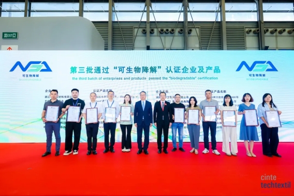 Durante l'incontro, Sun Ruizhe, presidente del China National Textile and Apparel Council, e Li Lingshen, vicepresidente del China National Textile and Apparel Council, hanno rilasciato certificati ai rappresentanti del terzo gruppo di imprese che hanno superato la certificazione "biodegradabile".