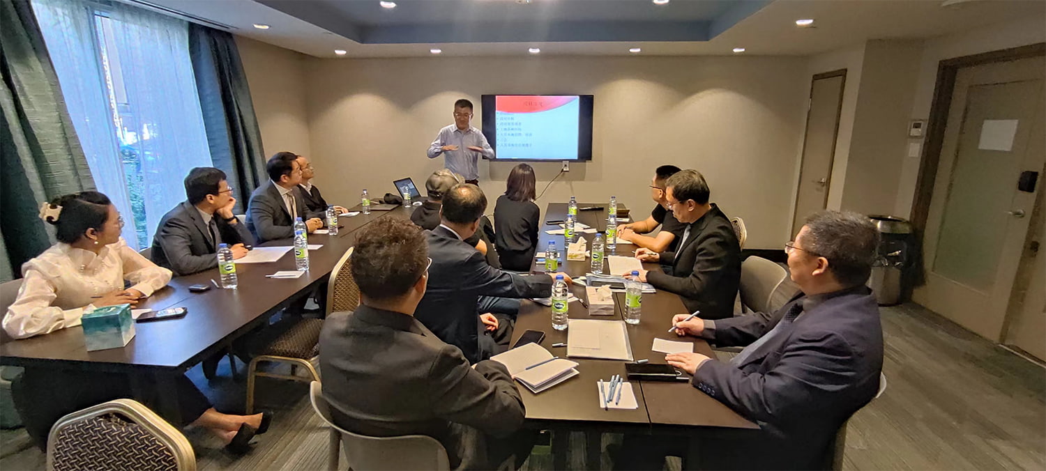 A Montreal, la delegazione ha condotto una ricerca sulla società canadese Tiandingfeng e ha avuto discussioni e scambi con i funzionari competenti della società. Sun Xiangjie, direttore marketing della Tiandingfeng Company, e Xiang Feng, il presidente, hanno presentato il contesto degli investimenti all'estero della società e la situazione degli investimenti in Canada. Hanno inoltre condiviso in dettaglio i vantaggi e gli svantaggi di investire in Nord America e fornito suggerimenti alle imprese cinesi per investire all’estero.